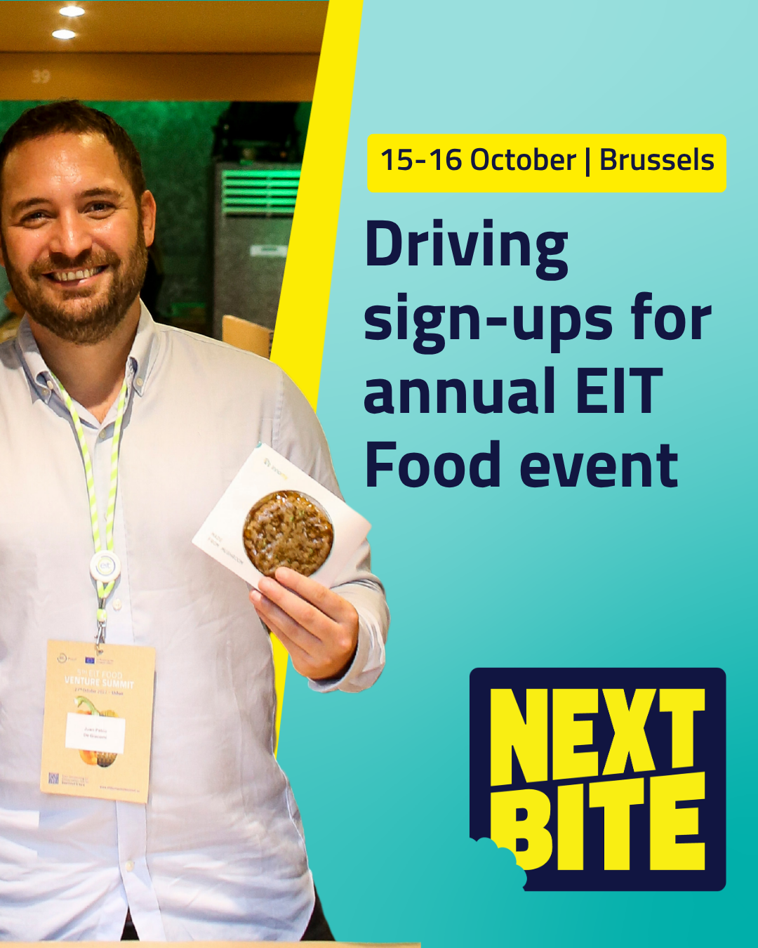 There was also a brand dimension. Next Bite was being positioned as a standalone event with its own identity, distinct from EIT Food's year-round communications. Existing members needed to recognise it as theirs. New audiences needed to encounter it as something worth showing up for in its own right.